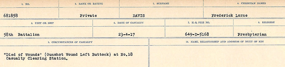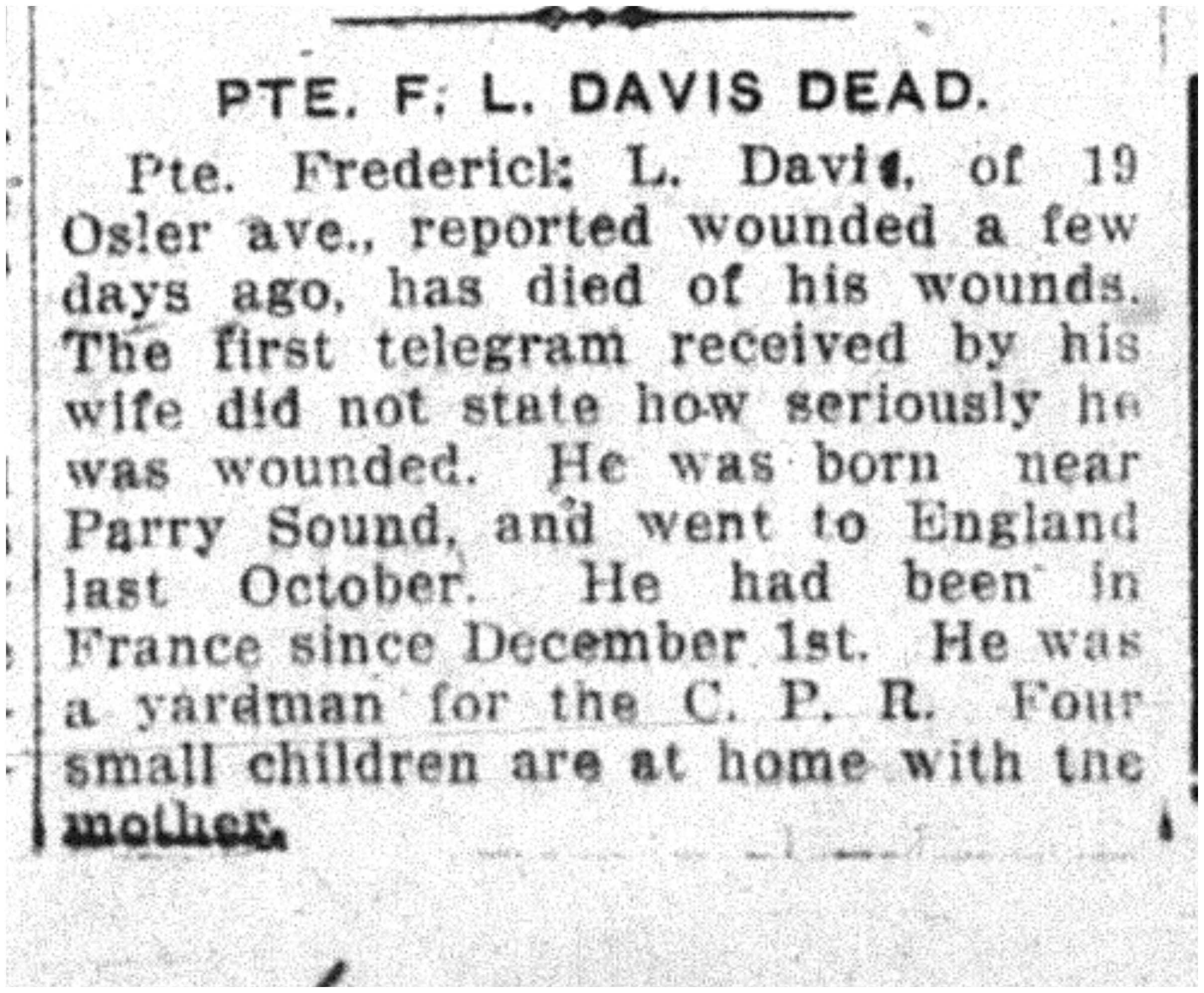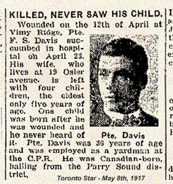 Époux de Olive Davis, de 64, Hay Avenue, Mimico, Ontario.