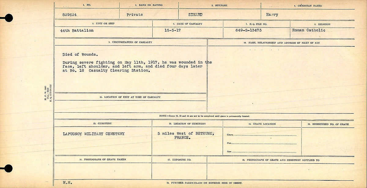 Galerie numérique de Soldat Harry Simard