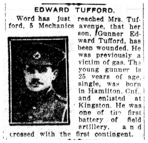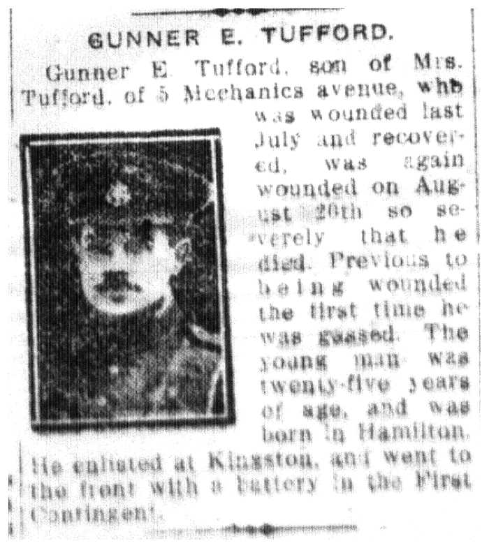 Fils de Washington et Priscilla Ann Tufford, de 21, Locomotive St., Hamilton. Ontario.