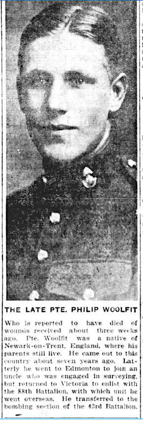 Fils de William Pearce Woolfitt et Emma Woolfitt, de Homeleigh, New Balderton, Newark. V. B. "C."