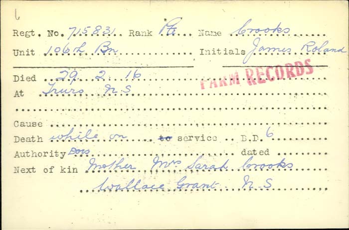 Fils de Sarah Crooks, de Wallace Grant, N.S., et feu Thomas Crooks.