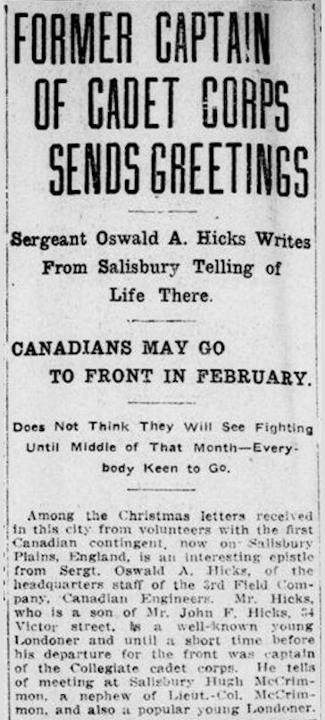 Fils de Mme Harriet Hicks, de 34, Victor St., London, Ontario.