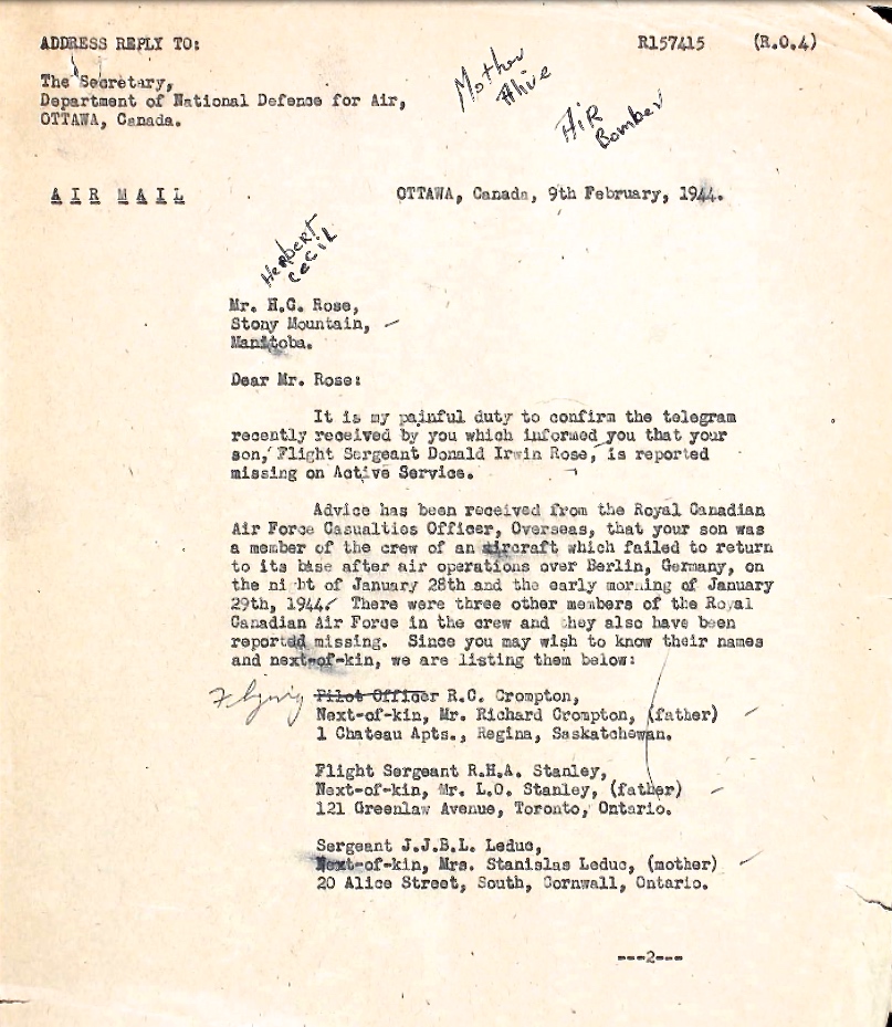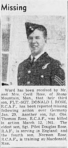 Galerie numérique de Flight Sergeant Donald Irwin Rose