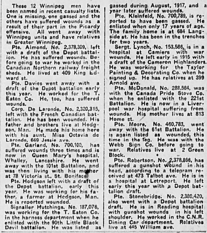 Fils de Evan et Ellen Almond, de 409, King Edward St., St. James, Manitoba.
