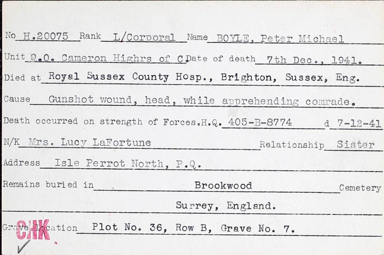 Galerie numérique de Caporal suppléant Peter Michael Boyle