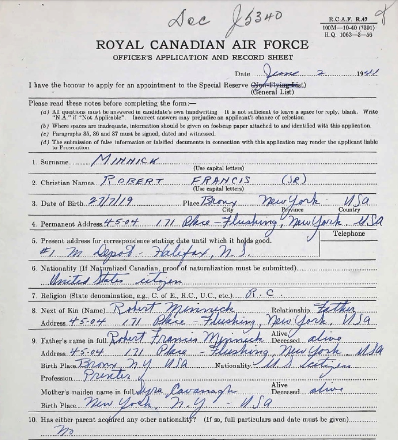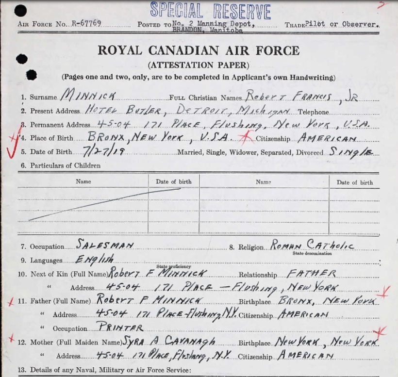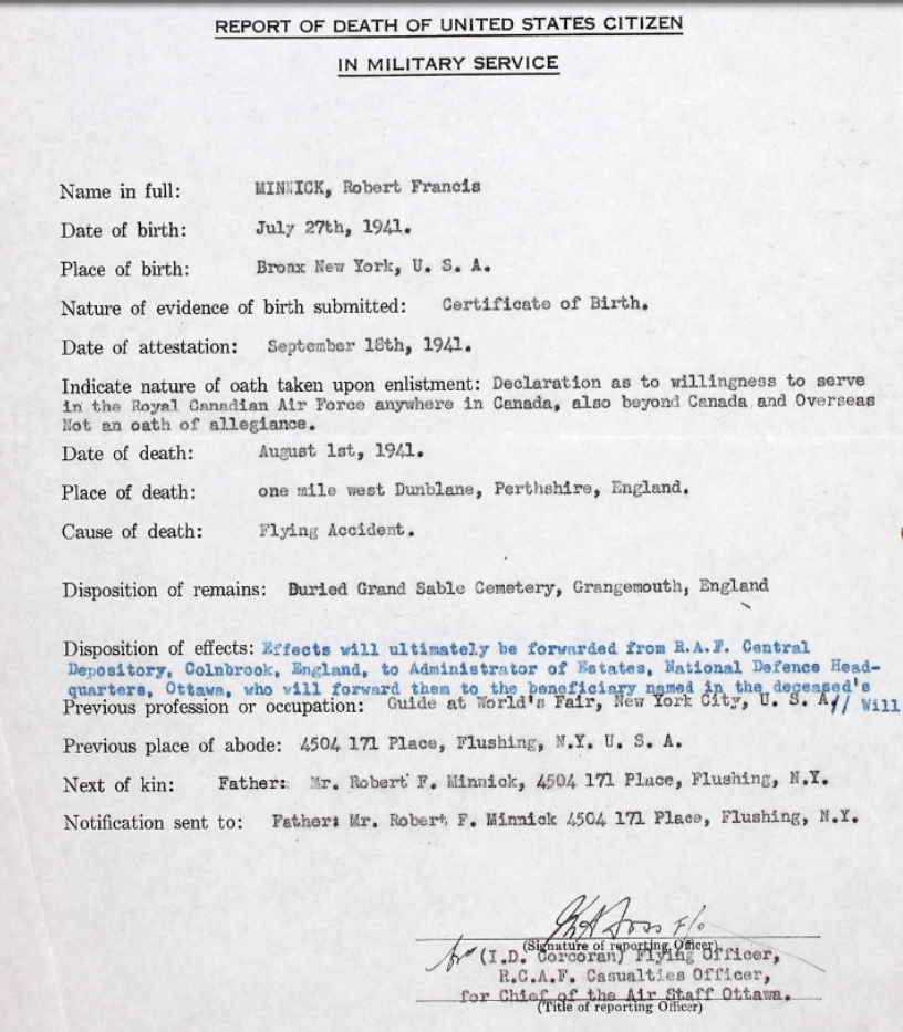 Galerie numérique de Sous-lieutenant d'aviation Robert Francis Minnick