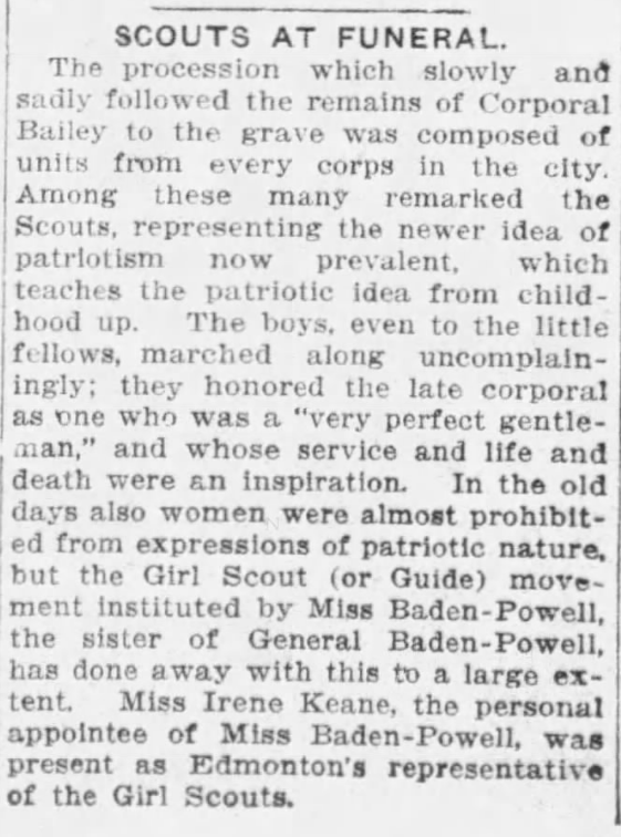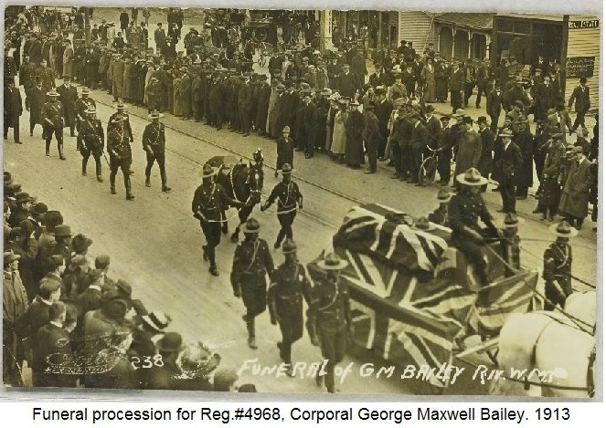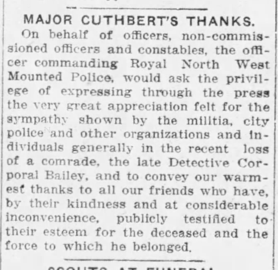 Le caporal Bailey est venu au Canada en provenance de l’Angleterre cinq ans avant son décès. Il était célibataire et n’avait pas de parenté au Canada. Il est décédé à Grassy Lake en Alberta, en tentant d’arrêter un suspect. Le caporal Bailey a été enterré à Edmonton en Alberta.