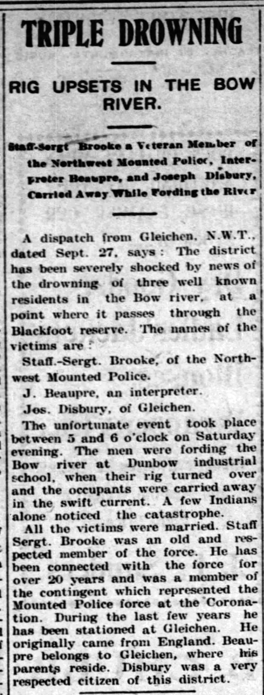 Le s.é.-m. Brooke était un franc-maçon. Il s’est enrôlé dans la G.C.N.-O. le même jour que son frère, A.R. Brooke (matricule 1103). Le s.é.-m. Brooke a été promu caporal le 1er juin 1888, sergent le 14 juillet 1890 et sergent d’état-major le 1er janvier 1893. On dit que le s.é.-m. Brooke jouissait d’« une excellente réputation partout dans le district ». Il s'est noyé en traversant à gué la rivière Bow sur la réserve de Blackfoot (Territoires du Nord-Ouest), alors qu’il était de patrouille. Il était marié à Margaret et il avait deux enfants, Annie et Arthur. Sa femme ne s’est jamais remariée et est décédée en 1950.