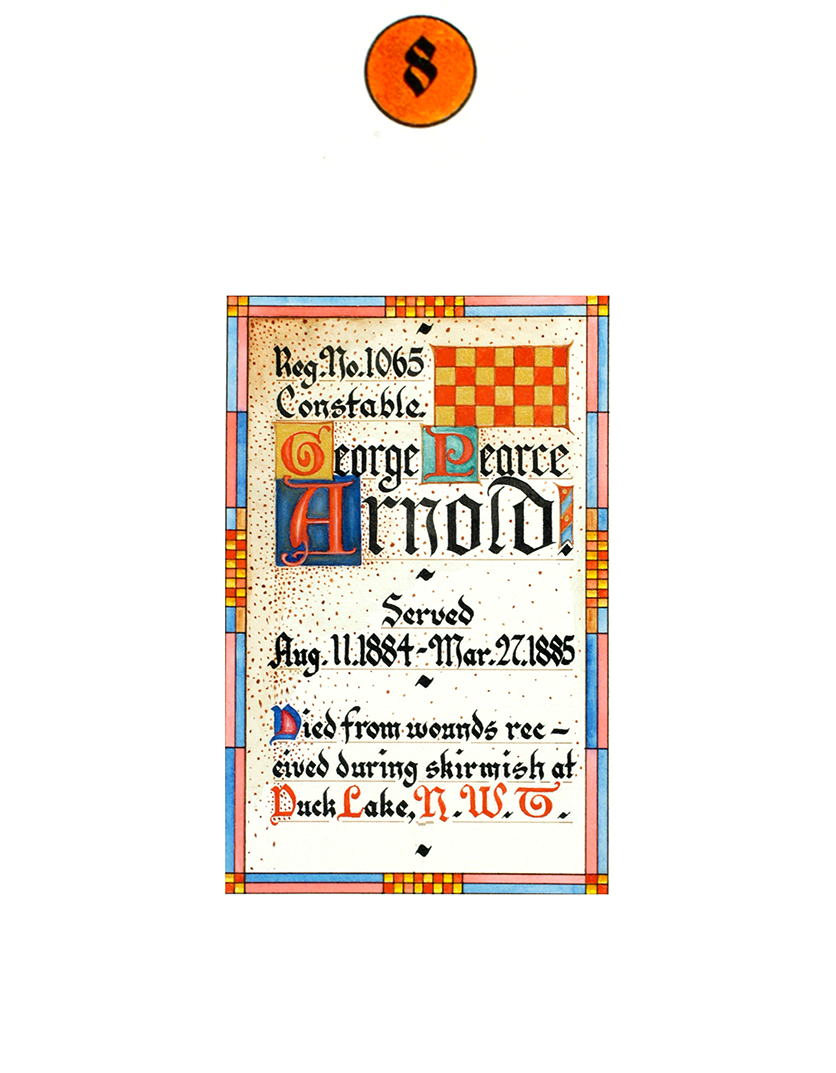 Le gendarme Arnold était un fermier en Géorgie (États-Unis) et il a été éclaireur au service de la cavalerie américaine avant de s'enrôler dans la Police à cheval du Nord-Ouest. Il a été tué durant la Rébellion de 1885 et a reçu la Médaille du Nord-Ouest canadien (1885). Cette médaille a été confiée au musée à Regina. Le gendarme Arnold est inhumé au cimetière St. Mary's à Prince Albert (Saskatchewan).