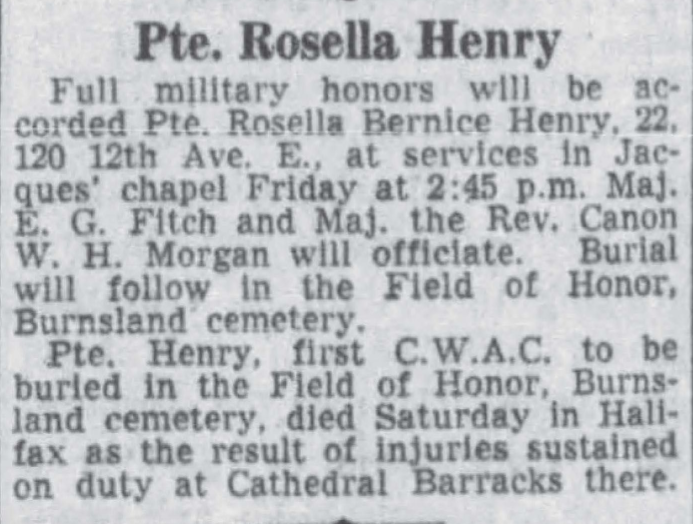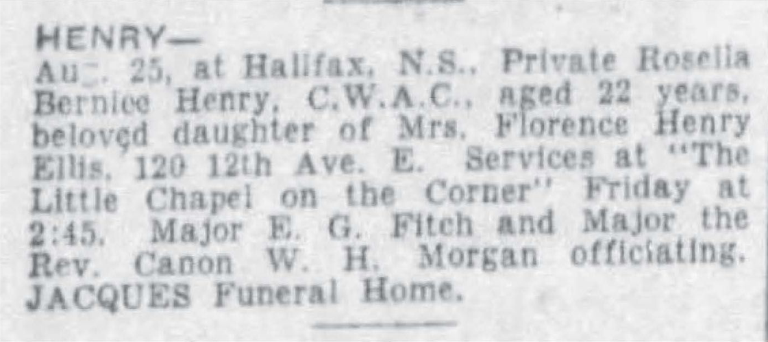 Sœur du caporal Gordon James Byron Henry, décédé au service du Royal Canadian Corps of Signals.