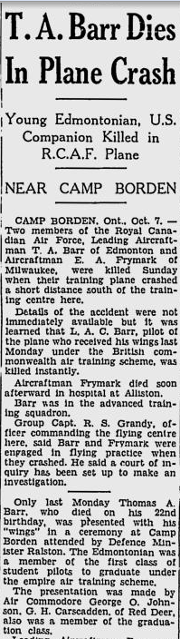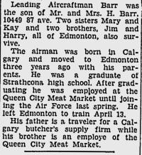 Fils de Harry et Alexandria Margaret Barr, de Edmonton.