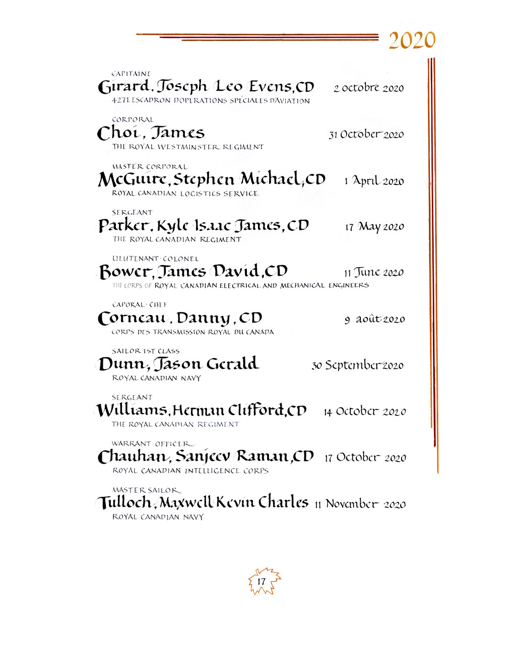 Page 17 du Livre du Souvenir de la Au service du Canada, Vol. II (2015 – ).