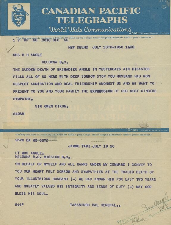 Époux de Margaret Gladys (née Nelson) Angle de Kelowna, Colombie-Britannique.