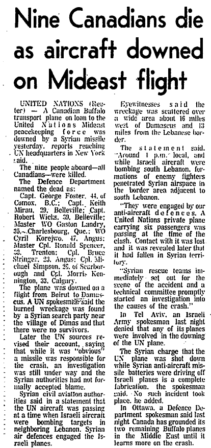 Il était l’un des neuf membres du personnel des Forces canadiennes qui ont perdu la vie lorsque l'appareil du vol 51 des Nations Unies à bord duquel ils se trouvaient a été abattu, le 9 août 1974. L’appareil Buffalo 115461 des Forces canadiennes exécutait un vol d’approvisionnement régulier d’Ismaïlia (Égypte) à Damas (Syrie) en passant par Beyrouth (Liban). Peu après avoir franchi la frontière libano-syrienne pour entrer en Syrie, le Buffalo fut abattu par trois missiles sol-air des forces syriennes, détruisant l’appareil et tuant toutes les personnes à bord.