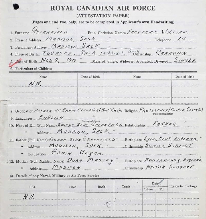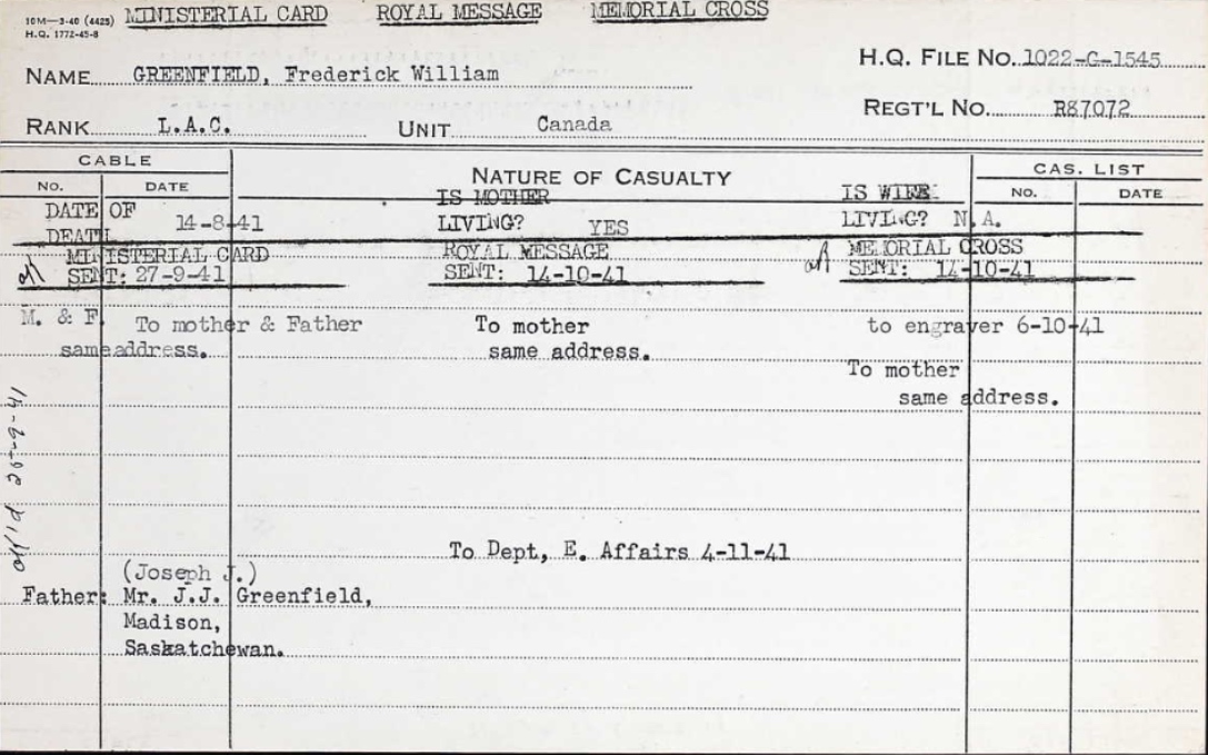 Galerie numérique de Aviateur-chef Frederick William Greenfield