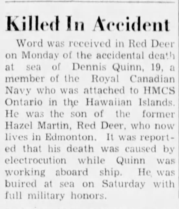 Fils de John (Jack) et Hazel Mary Quinn. Frère de Denise et Kathleen de Edmonton, Alberta.
