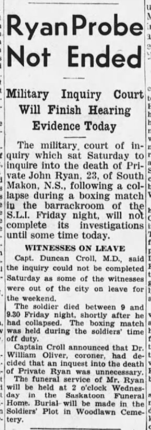 Frère de Patrick Ryan, de South West Mabou, Nouvelle-Écosse.