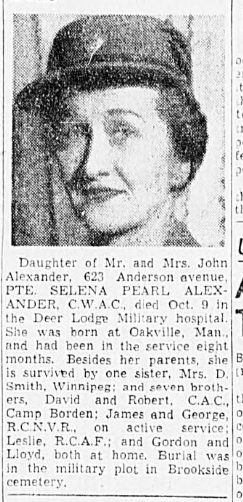 Fille de John et Wilhelmina Alexander, de Winnipeg, Manitoba.
