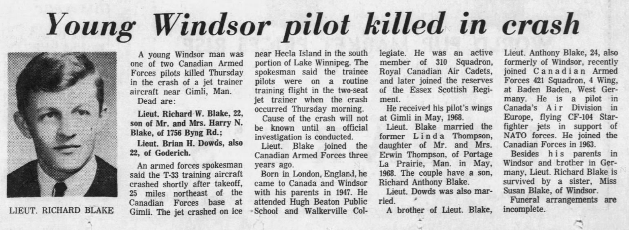 Fils de Harry Nelson et Ruth Dineen (née Aitken) Blake de Windsor, Ontario. Époux de Linda Louise (née Thompson) Blake et père de Richard Anthony de Gilmi, Manitoba.