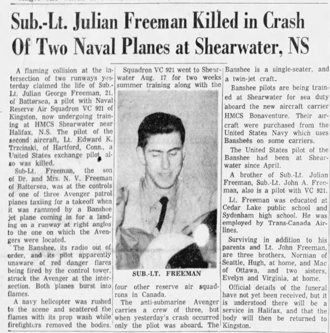 Fils de Norman et Gertrude Freeman de Kingston, Ontario. Frère de Norman, Hugh, Roger, John, Evelyn et Virginia Freeman.