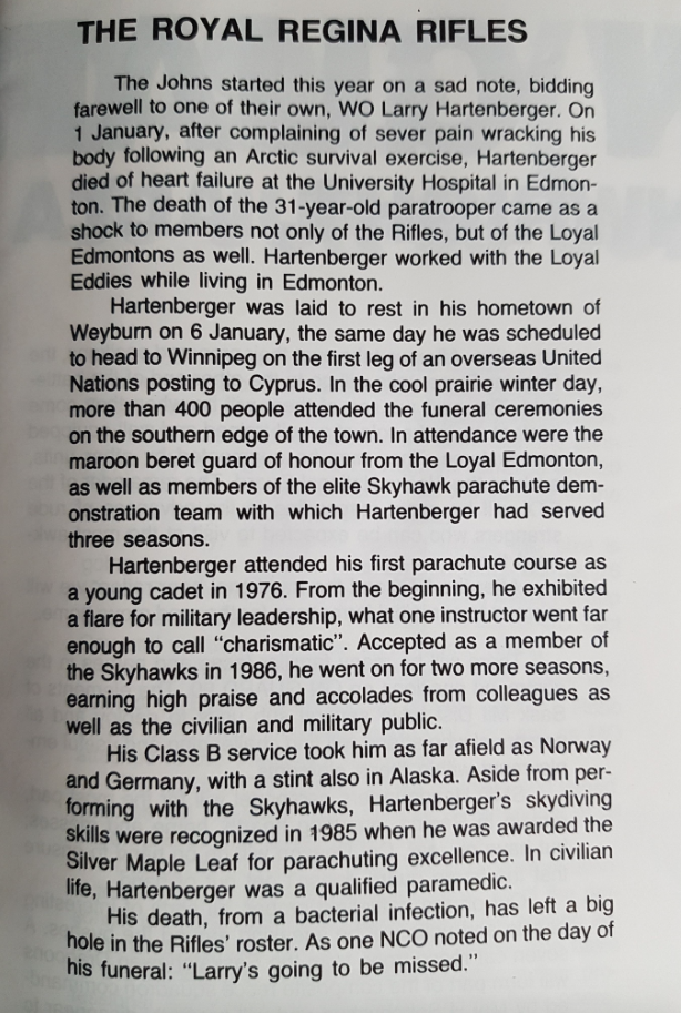 Fils de M. et Mme Henry Hartenberger de Weyburn, Saskatchewan.