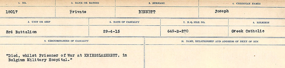 Galerie numérique de Soldat Joseph Bennett