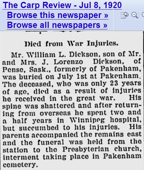 Fils de James L. et Mary Agnes Dickson, de Pense, Sask