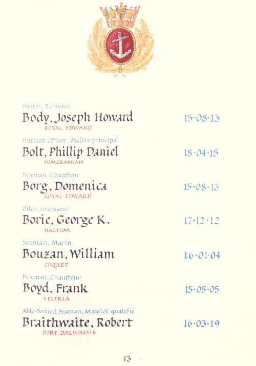 Page 13 du Livre du Souvenir de la Marine marchande.