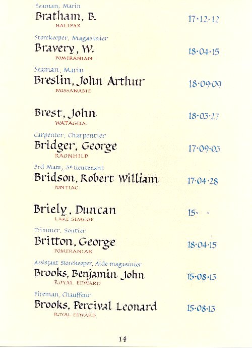 Page 14 du Livre du Souvenir de la Marine marchande.