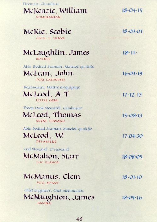 Page 48 du Livre du Souvenir de la Marine marchande.