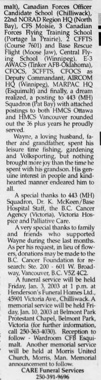 Époux de Patricia Lynn (née Barker) et père de Darren, Angela et Pamela de Victoria, Colombie-Britannique.