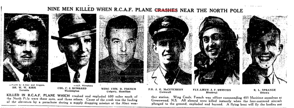 Les dépouilles des huit Canadiens devaient être rapatriées au sud à bord d'un hydravion à coque Canso de l'unité de sauvetage 103, mais en raison des difficultés à récupérer les corps, on fut contraint d'inhumer les Canadiens à Alert.