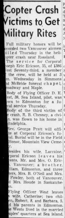 Fils d'Ole et Elizabeth (née Belcourt)Ericson of Victoria, Colombie-Britannique. Époux de Lorraine Vera Violet (née Martin) Ericson de Vancouver, Colombie-Britannique. Frère de Inner, William Ericson, Christina Houde, Edith O'Neil, Grace Fawler et Gerda Gardner.