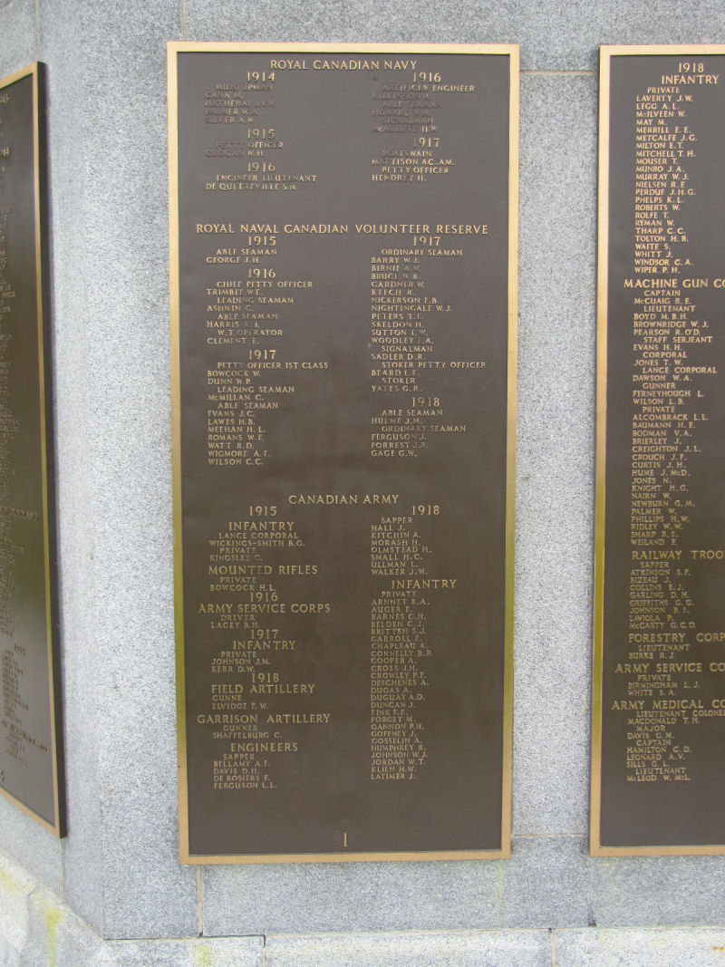 Ce Monument commémoratif, érigé au parc de Point Pleasant dans la capitale de la Nouvelle-Écosse, est l'un des rares hommages concrets aux hommes disparus en mer. Pendant la Seconde Guerre mondiale, la Marine royale du Canada perdit vingt-quatre navires et près de deux mille membres de ses effectifs.