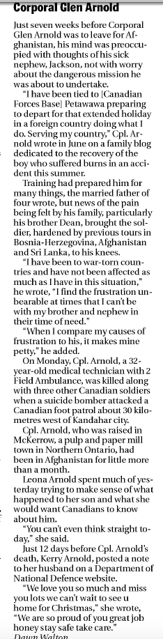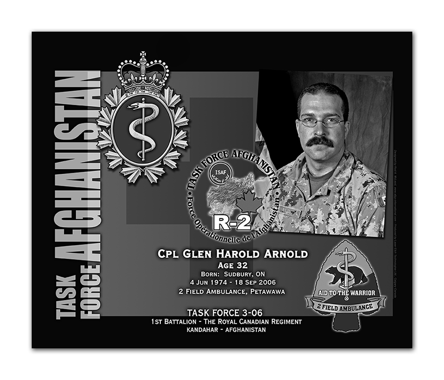 Fils de George et Leona (née Lanthier) Arnold de McKerrow, Ontario. Époux de Kerry-Lynn Arnold de Petawawa, Ontario. Père de Jessica, Katherine, Samantha, et Connor.