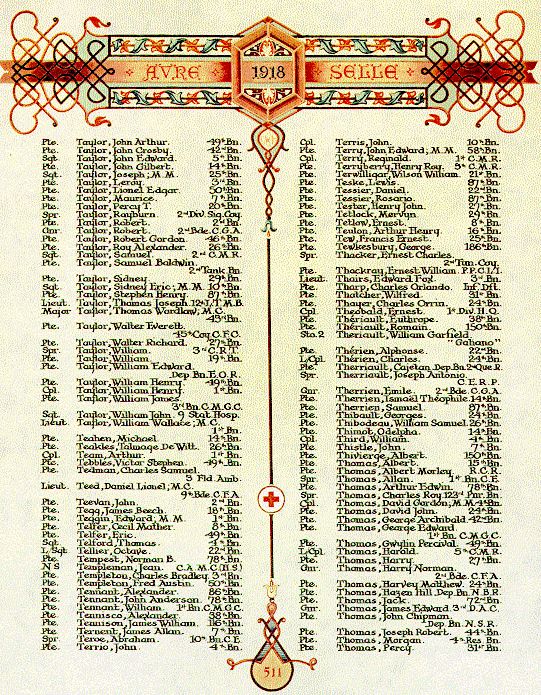 Page 511 du Livre du Souvenir de la Première Guerre mondiale.