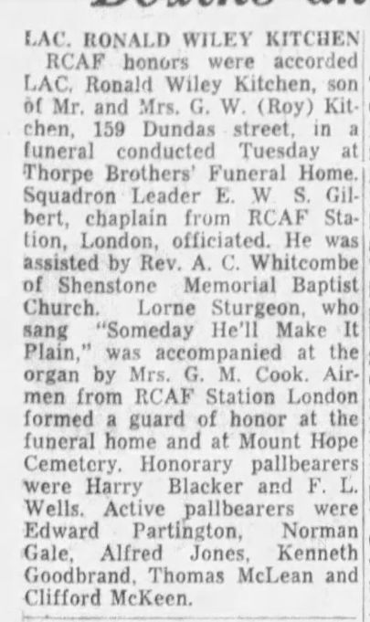 Fils de George William et Clara Myrtle Kitchen de Brantford, Ontario. Frère de Jean, Earl, Harry, John, Henry, Ida et Margaret Kitchen.