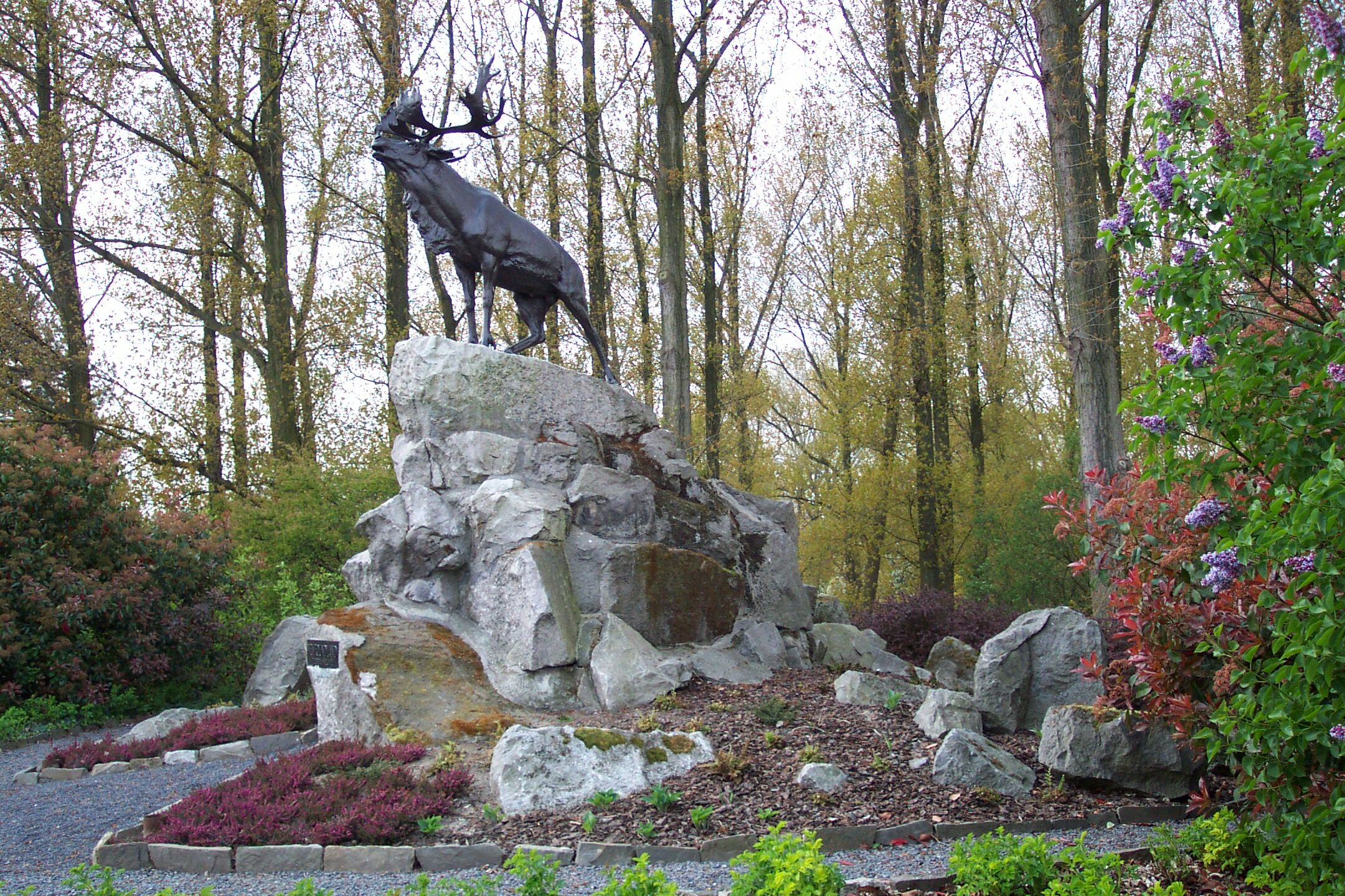 Le seul caribou commémoratif en Belgique se trouve au mémorial terre-neuvien à Courtrai, juste en dehors de Courtrai sur la route de Gand. Érige sur un monticule de pierres, le caribou évoque le franchissement de la Lys par le Royal Newfoundland Regiment, qui relevait alors d'une division britannique. Aujourd'hui, on peut voir sur la base du Mémorial des traces de balles qui rappellent la dernière avance tragique du régiment pendant la guerre.
