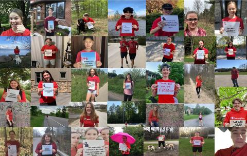 « L’une des idées d’un élève était de marcher. Le but s’est peu à peu défini ainsi : Pouvons-nous marcher 75 kilomètres, pouvons-nous donc faire en sorte que chaque élève marche au moins un kilomètre en l’honneur de la commémoration? » Les élèves ont invité leurs amis et leur famille à participer à des promenades individuelles dans leur quartier en arborant un t-shirt rouge représentant le Canada.