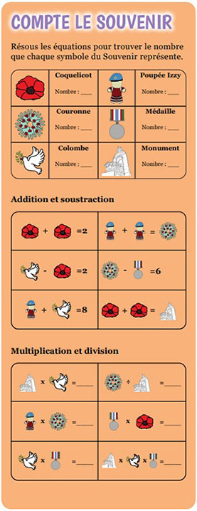 Résous les équations pour trouver le nombre que chaque symbole du Souvenir représente.