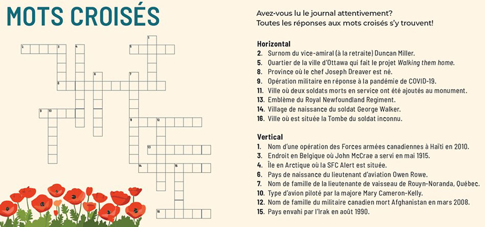 Cette année marque le 110e anniversaire de l’écriture du poème Au champ d’honneur de John McCrae. Encore aujourd’hui, ce poème occupe une place importante dans de nombreuses cérémonies du jour du Souvenir. Connais-tu les premiers vers du poème?