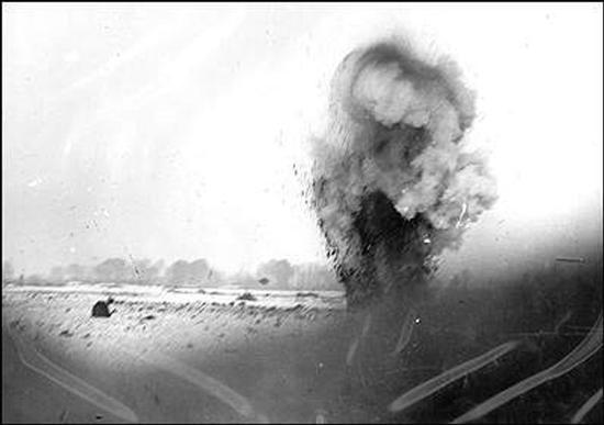 Un obus ennemi explose à Beaumont-Hamel, 1916.