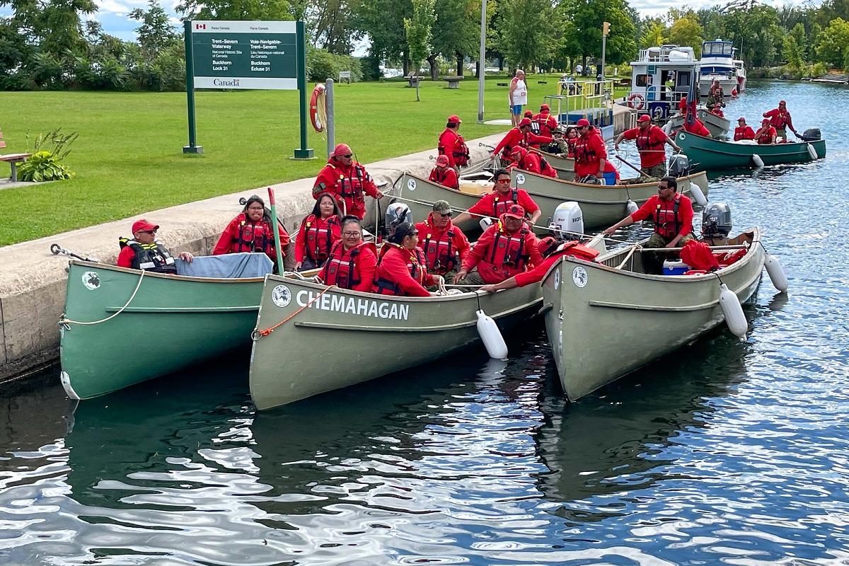 Membres du 3e Groupe de patrouille des Rangers canadiens voyageant en bateau dans le centre de l’Ontario en septembre 2022.