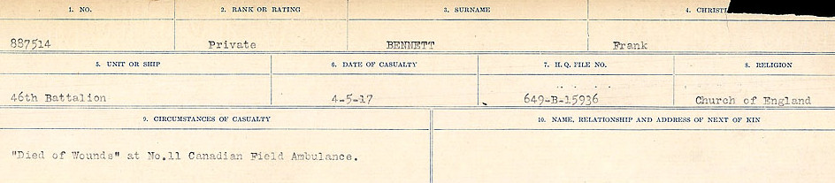 Époux de G. Bennett, de 31, Newtown Rd., Northampton, Angleterre.