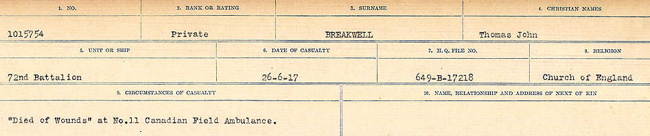 Galerie numérique de Soldat Thomas John Breakwell