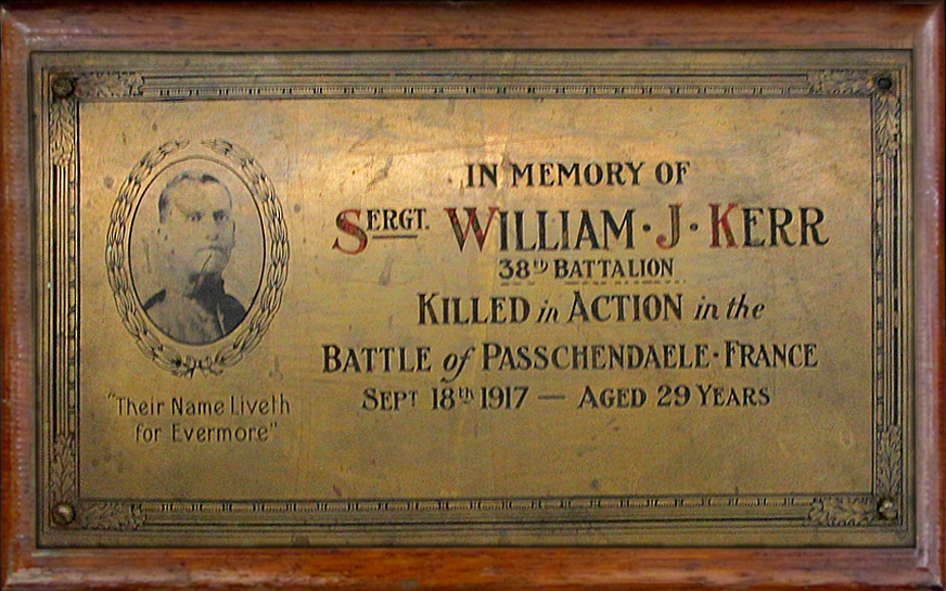 Commémoré sur la Plaque du sergent William James Kerr.