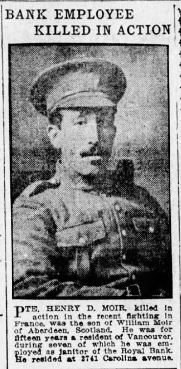 Fils de William Moir, de Bogingoss Crdet, Dyce, Aberdeenshire, Écosse, et Isabella Reith Moir. Originaire de Kinellar, Aberdeenshire.