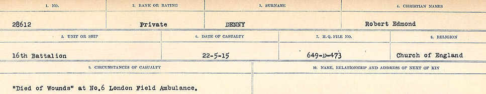 Galerie numérique de Soldat Robert Edmond Barry Denny