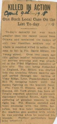 Fils de William et Elizabeth Elliott, de Hamilton, Ontario.
