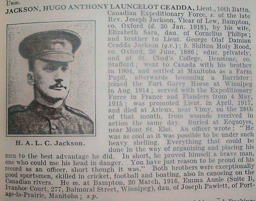 Frère du lieutenant George Jackson, décédé le même jour a servi dans le même régiment.